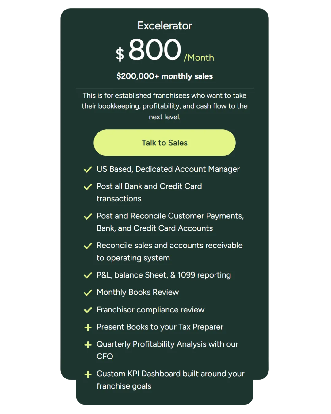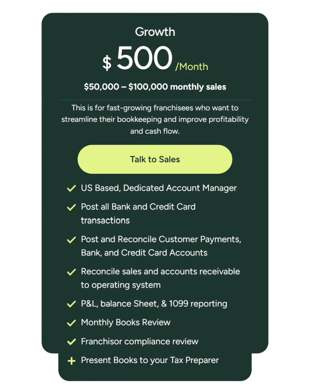Our mission is simple: to help franchisees grow. With nearly two decades in the industry, we understand the intricacies that local CPAs often don’t. Whether you're a seasoned financial expert or just getting started, we offer tailored support to ensure your finances are streamlined, allowing you to focus on growing your business with confidence.